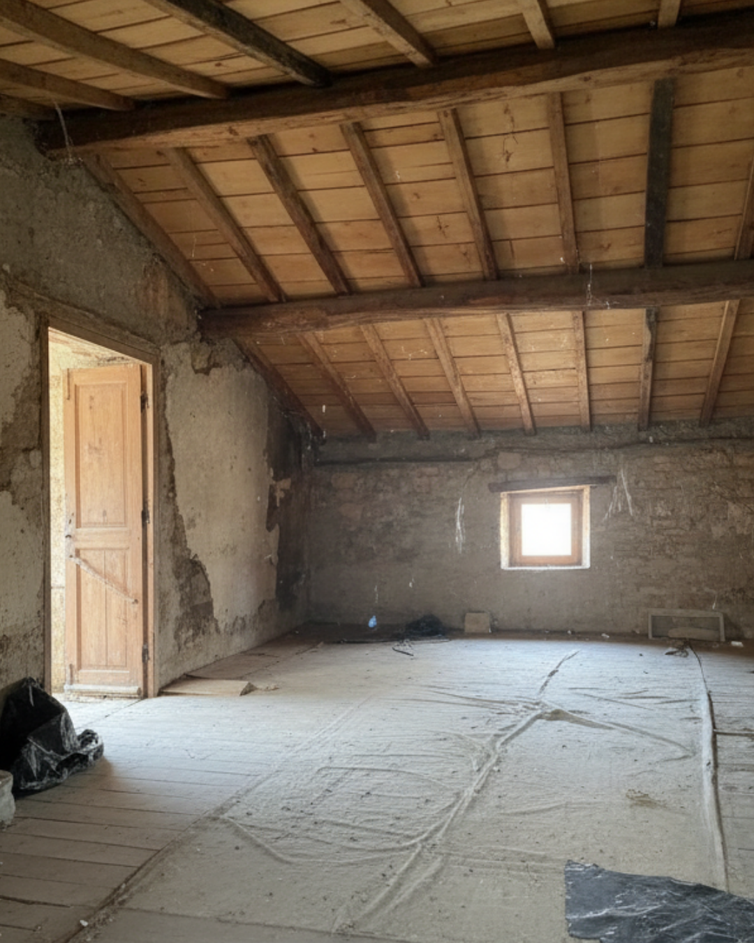 Avant, cet espace n’était qu’un grenier brut : des murs marqués par le temps, une lumière limitée et un volume inexploité.