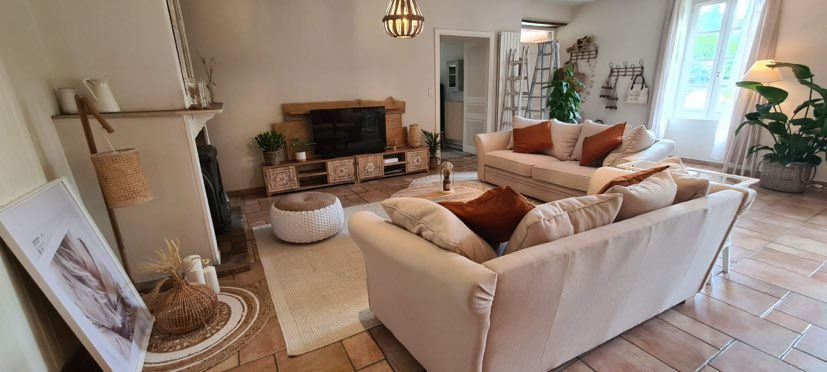 Création d’un salon convivial mêlant matières naturelles et touches bohèmes. Un intérieur doux et intemporel.